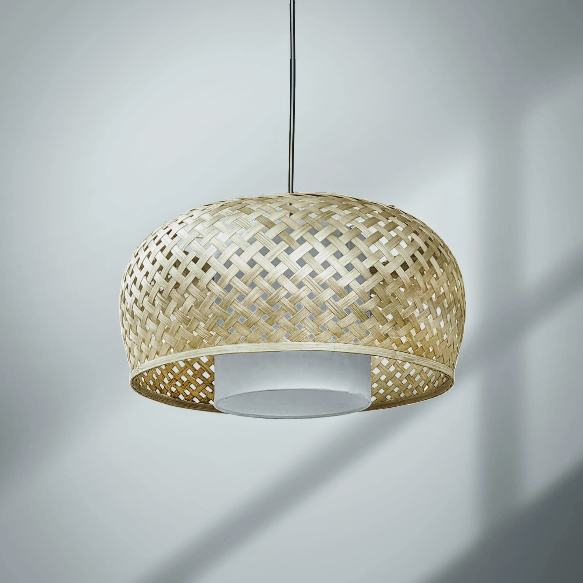 Elevate your interiors with a wash of warm light, with this classic yet contemporary ceiling lamp, filtering through the layers of its intricately woven design.
