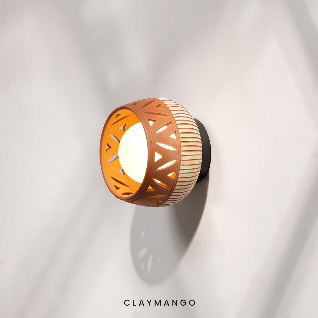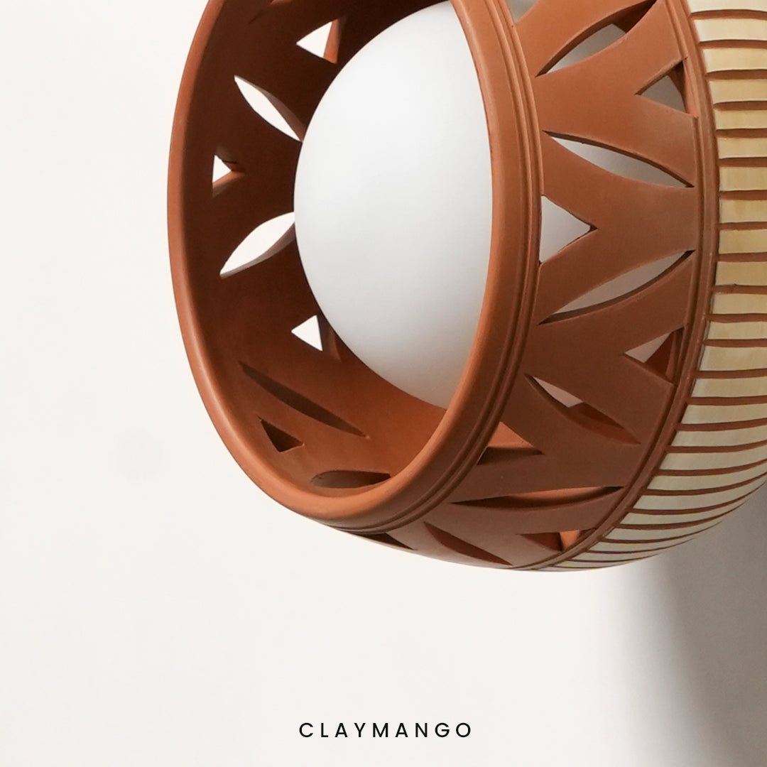 Deyo celebrates the timeless beauty of handcrafted terracotta, shaped by skilled artisans who bring earth, fire, and tradition together. The bowl is meticulously formed and carved by hand, creating delicate cut-work that transforms light into intricate shadow patterns on your walls and ceiling. At its center, a warm glowing orb sits like an ember, echoing the spirit of a contemporary diya. Designed for versatility, Deyo can be installed as a wall lamp, adding intimate ambience and textured shadows to hallways, bedsides, and living spaces. As a ceiling lamp, its terracotta form creates a stunning focal point, casting a soft, halo-like glow that fills the room with warmth. Rooted in craft yet modern in form, Deyo brings the soul of terracotta into everyday living.