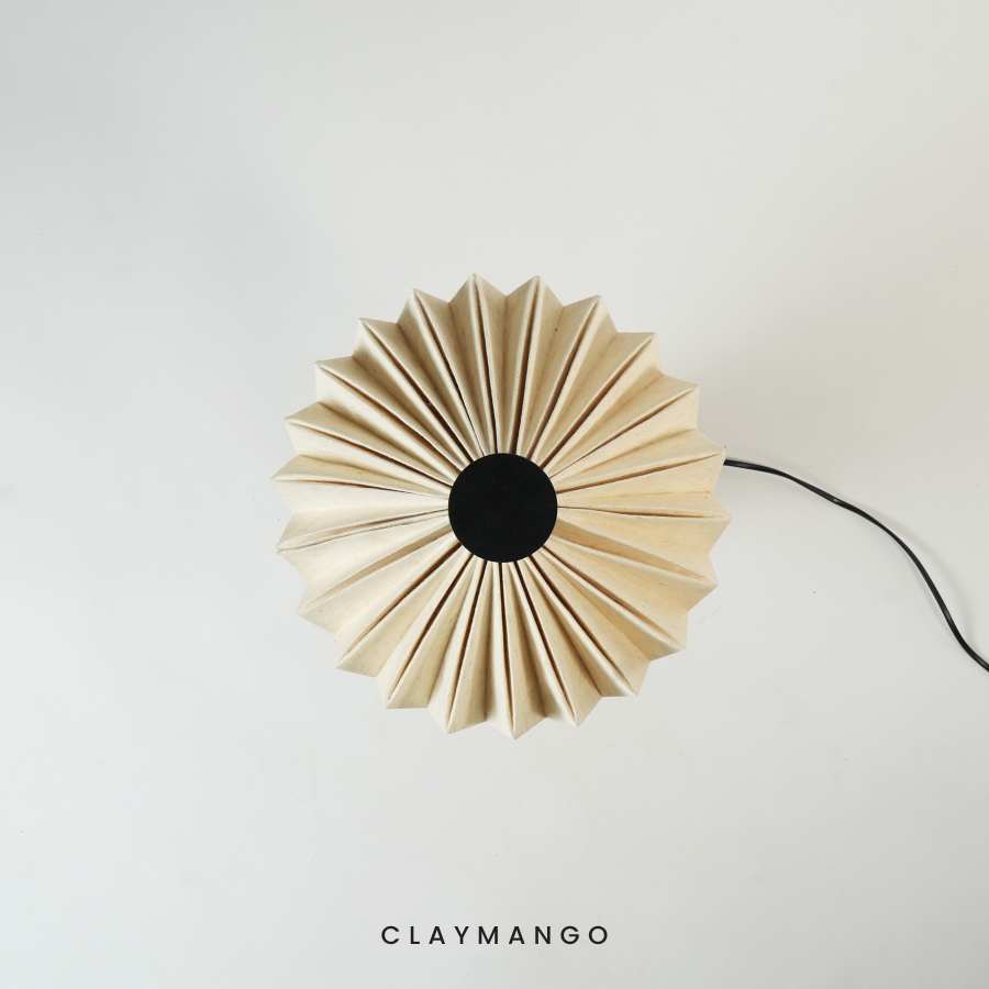 Boru features a meticulously hand-folded shade crafted from paper laminated with fabric for enhanced strength, texture, and durability. The shade assembles effortlessly with an integrated magnetic mechanism, while a pull-string with an elegant metal detail locks it securely in place. The base is handcrafted from natural terracotta, lending a warm, organic character that complements the sculptural form.