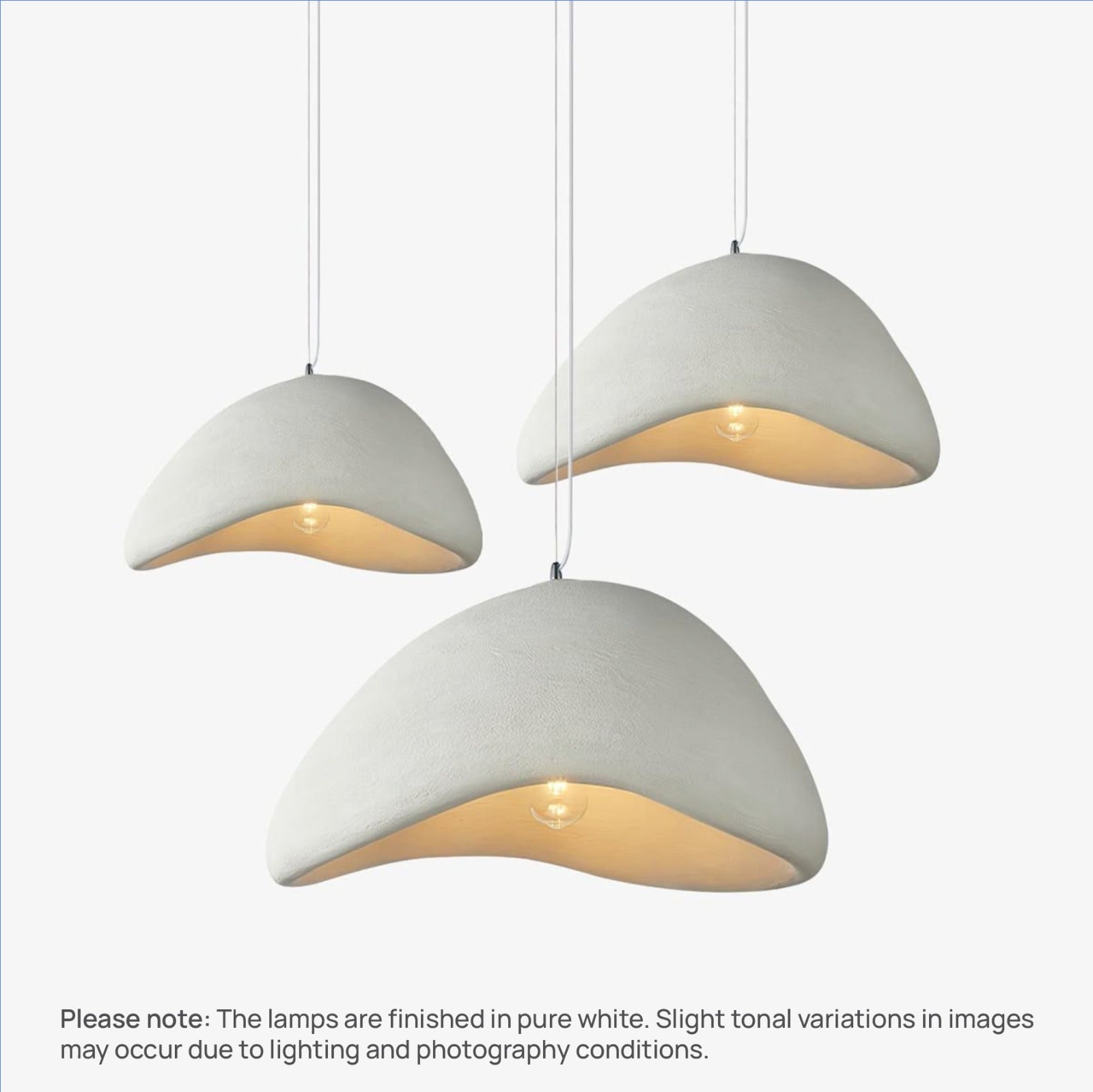 Please note: The lamps are finished in pure white. Slight tonal variations in images may occur due to lighting and photography conditions.