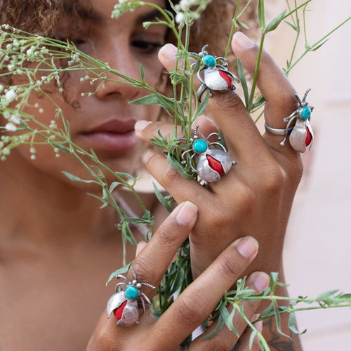 honeybee ring - Â 92.5 Sterling Silver, Brass globules.