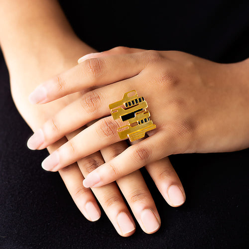 GEOMETRIC JUNGLE sterlling silver ring - GOLD PLATED