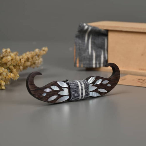 Wooden moustache bow-tie from Seafret collection ( handcrafted by using MOTHER OF PEARL inlay technique on wood)