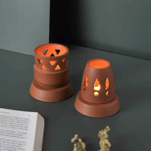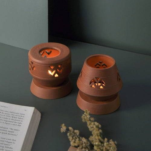 DVI - Set of 2 - handcrafted terracotta Tealight lamp for your study table, dining table, side table from Festive collection-Terracotta-Claymango.com