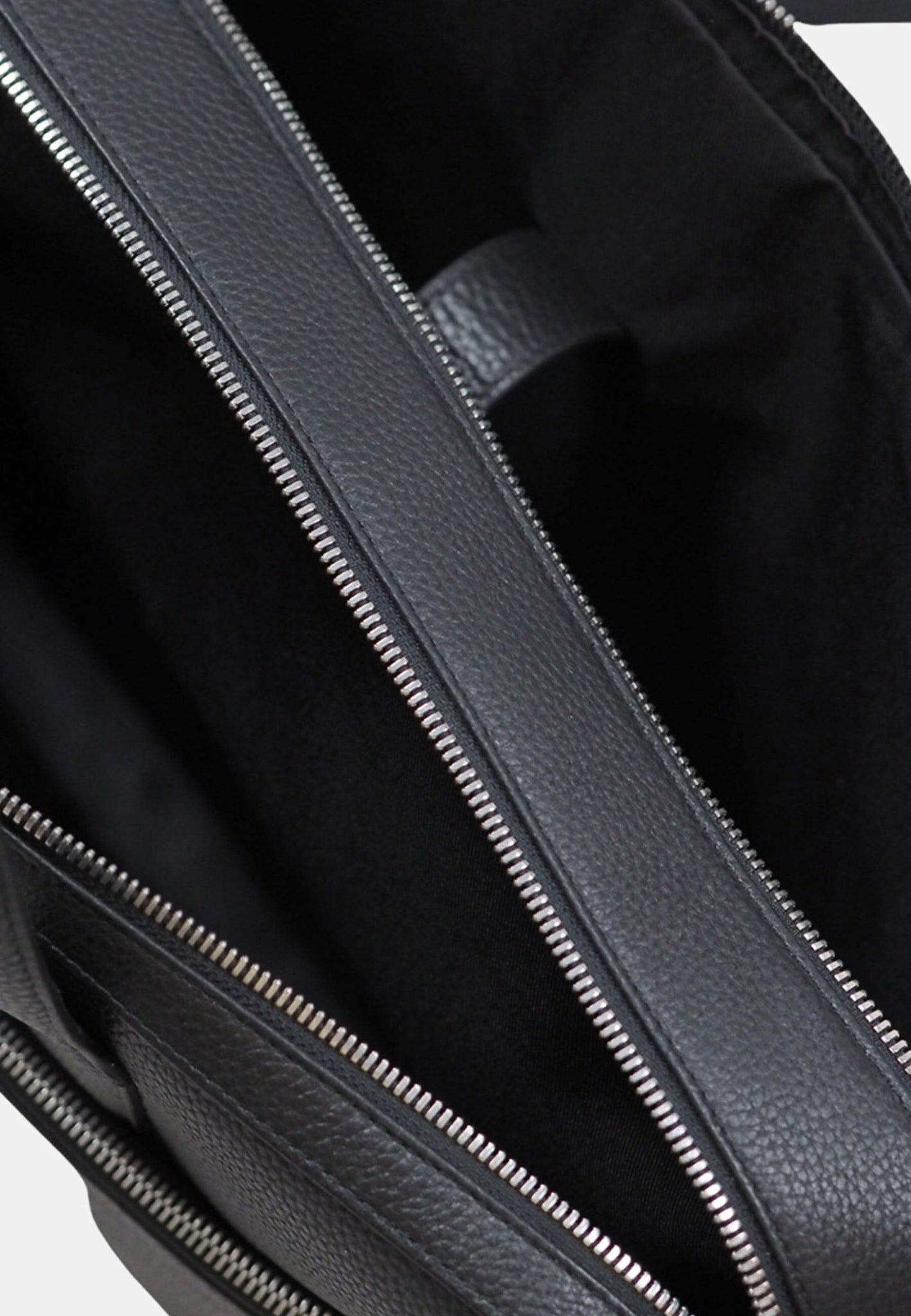 The soft and grainy leather is a versatile end product that complements both tailored outfits and casual looks. The exposed, polished zipper on the front facilitates access to the spacious front pocket. The full-leather shoulder strap is wide and features a polished silver buckle.