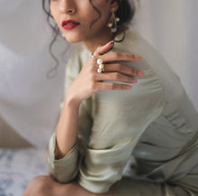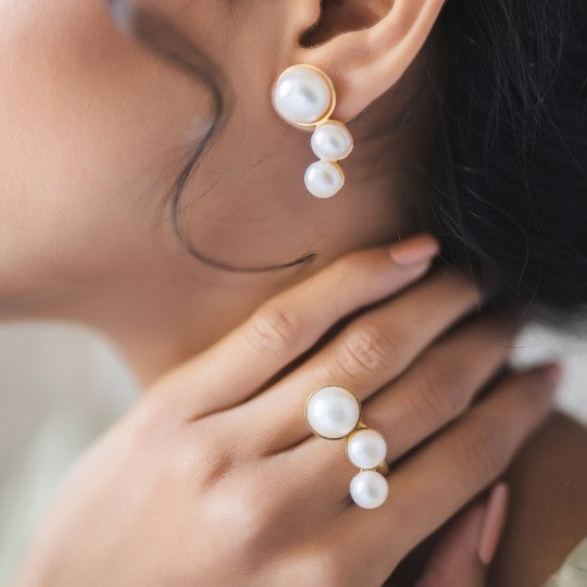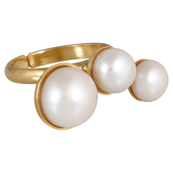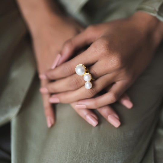 Cute little half eclipses beaten from brass and adorned with pearls in a fascinating curvature & intriguing symmetry. Versatile, minimal yet elegant. Can be worn casually with a denim & tee, for a classic look, pair it with any of your favourite pearl earrings or our Miya danglers & Diti neckpiece. Adjustable ring size.Made in India.Perfect for gifting as it comes in a beautiful packaging. Like every piece of jewellery handle with care. Take off for hard work or bathing in the ocean. Take off for sleeping to prevent bending.