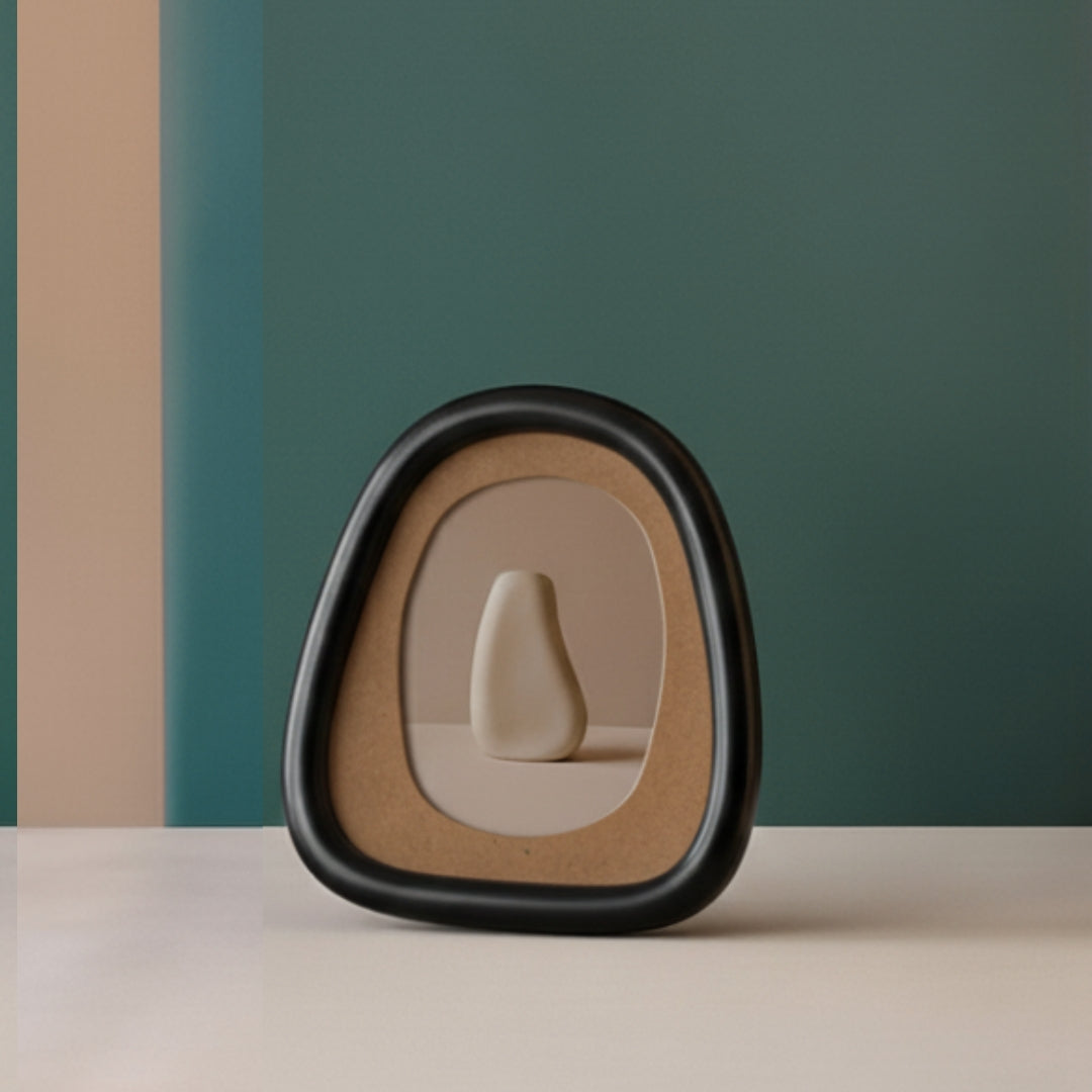 Defined by a soft, flowing silhouette and finished in deep black, Ovo carries the quiet elegance of natural form. Its contours feel organic yet refined, like something shaped gently by time. Centering the photograph within, it becomes more than a frame, it is a vessel of memory, timeless and understated.