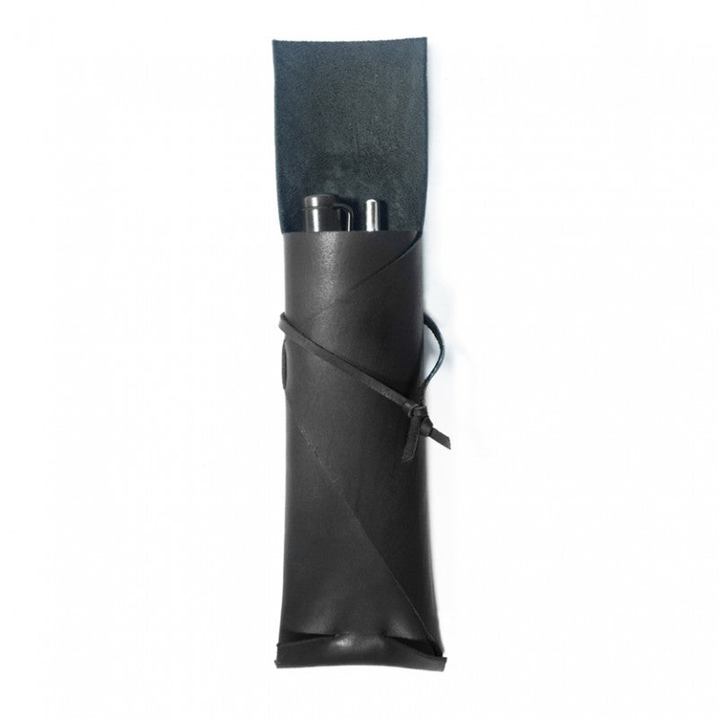 Leather pen-case is crafted using origami in leather as opposed to traditional stitching, to portray the material as a pure and minimalist entity to store pens / pencils. Minimal knot for flap keep pens handy. Graceful ageing of leather by use and habit is responsible for the adaptive hues of material