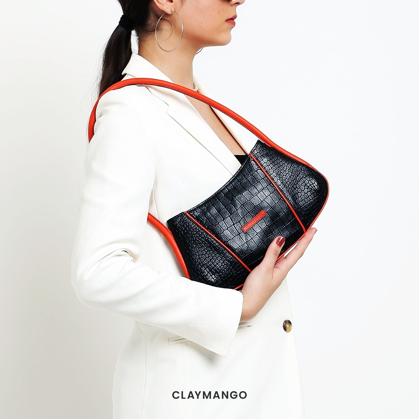 Prepare to be mesmerized by our Searing Shoulder Bag, which boasts a luxurious crocodile leather finish with shades of fiery orange and deep black. It captures the captivating essence of hot coals, ensuring you stand out on your fashion journey.