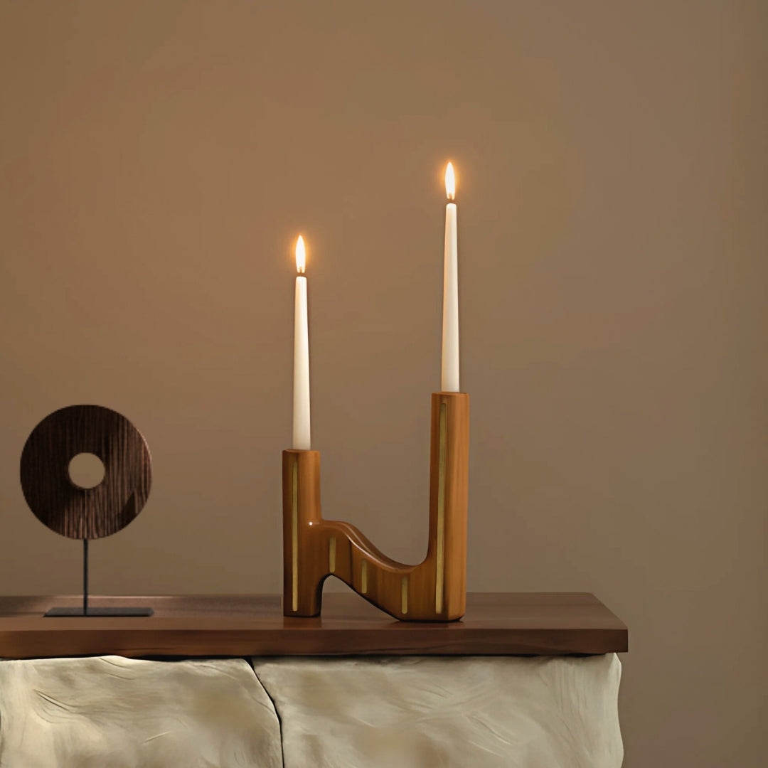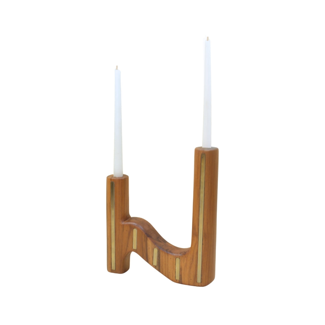 | Material | Teak Wood, Brass, 2 Stick Candles Included. |