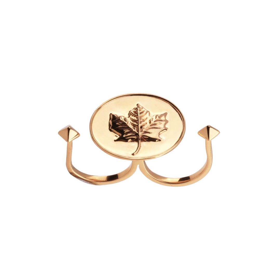 "Give your wardrobe new and wild look with this leaf motif design ring which covers both fingers beautifully.