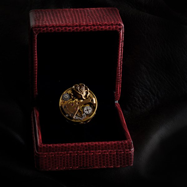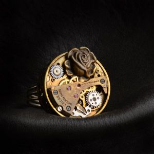 Steampunk ring made of vintage watch parts and sculpted embellishment-Jewellery-Claymango.com