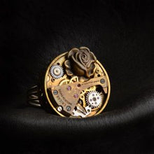 • Load image into Gallery viewer, Steampunk ring made of vintage watch parts and sculpted embellishment-Jewellery-Claymango.com