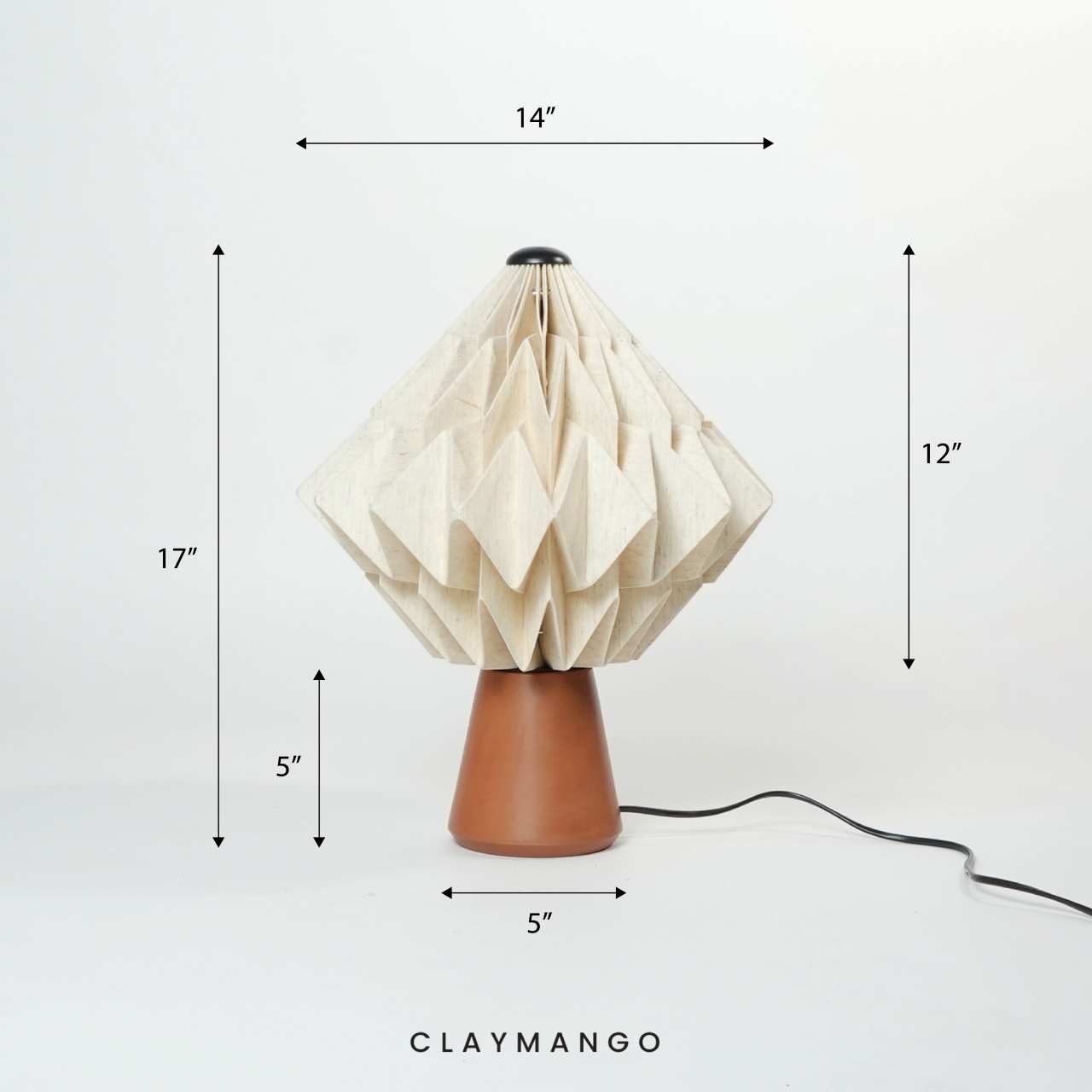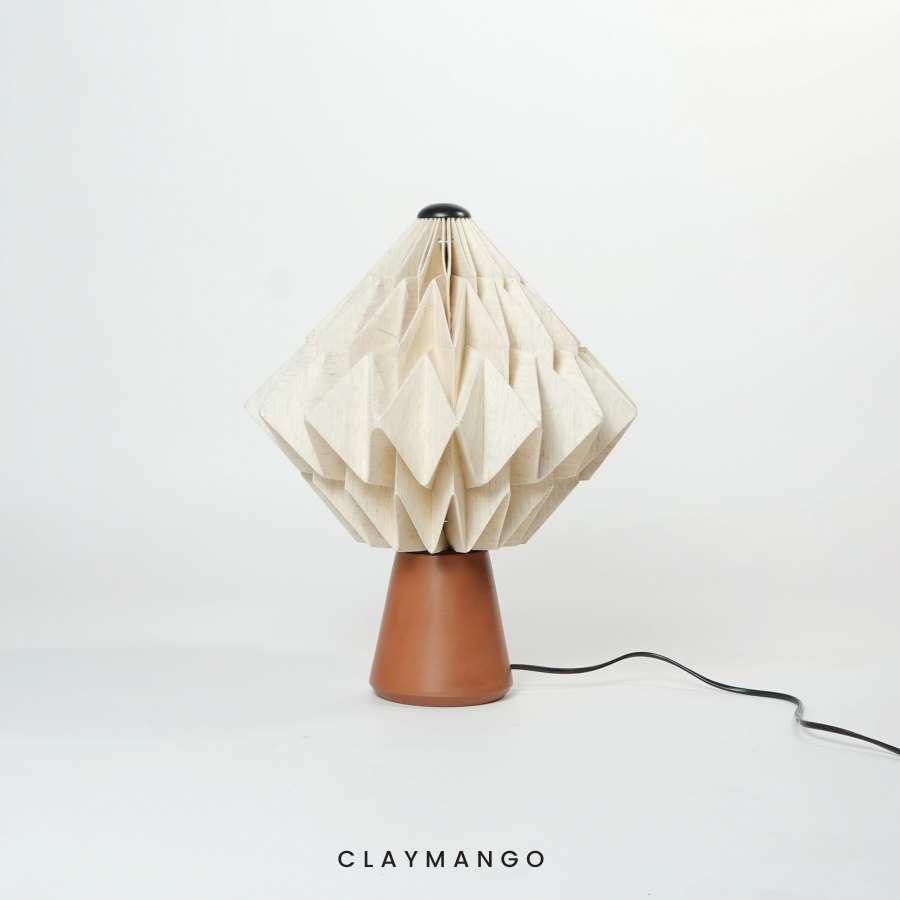 TARO features a meticulously hand-folded shade crafted from paper laminated with fabric for enhanced strength, texture, and durability. The shade assembles effortlessly with an integrated magnetic mechanism, the base is handcrafted from natural terracotta, lending a warm, organic character that complements the sculptural form.
