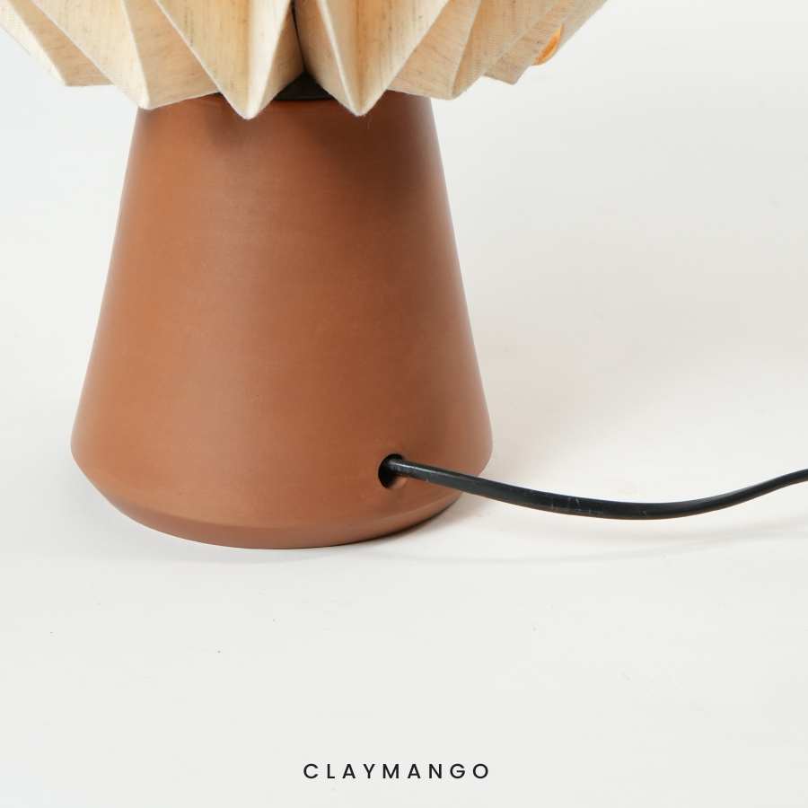 Rooted in strength, reaching for the sky — Taro draws its essence from the timeless elegance of conifer trees. Its unique, finely folded paper shade echoes the layered symmetry of evergreen needles, while the sturdy terracotta base reflects its rigid trunk. With its warm, diffused light and sculptural form, Taro embodies resilience, stillness, and a quiet vertical grace, bringing a touch of evergreen calm to any setting