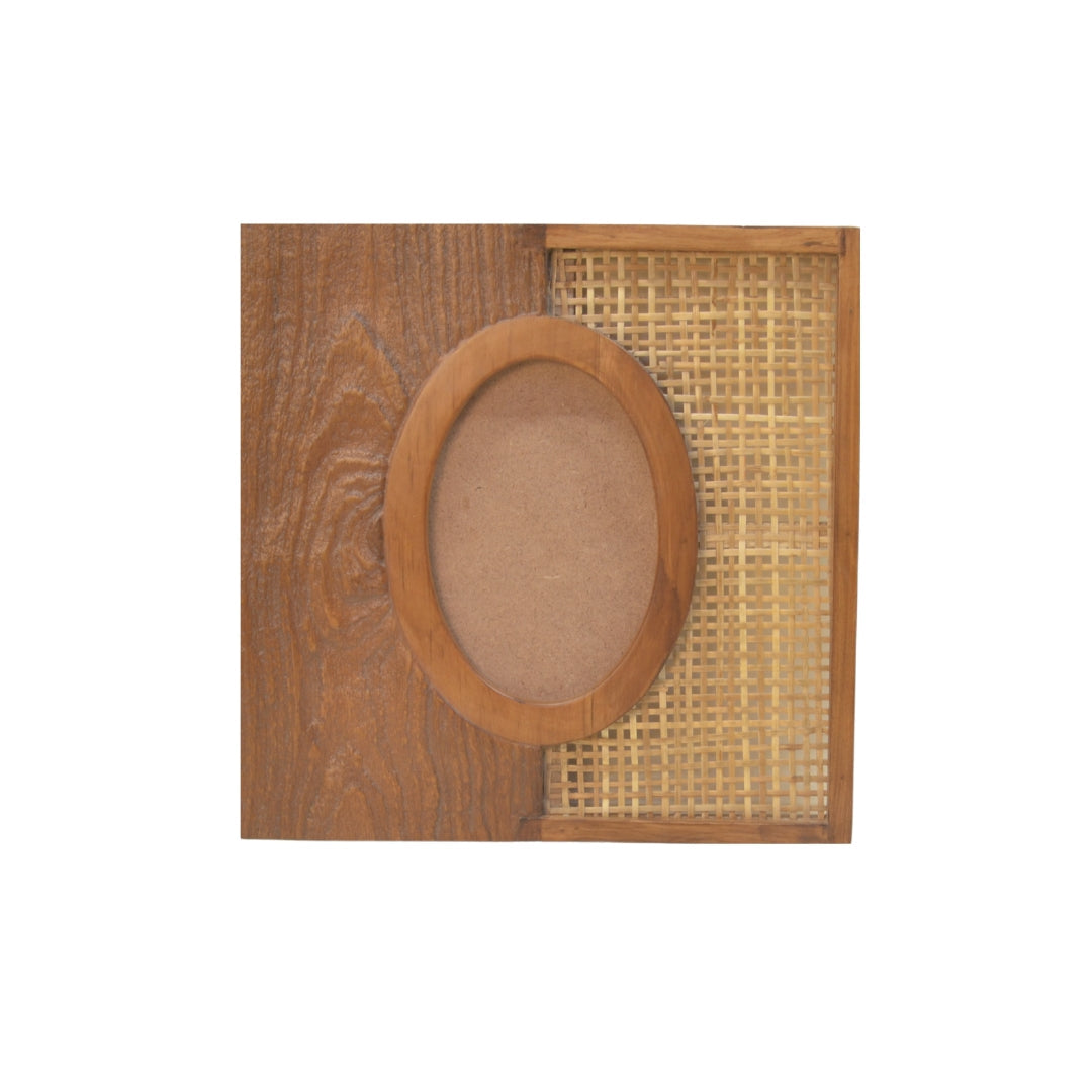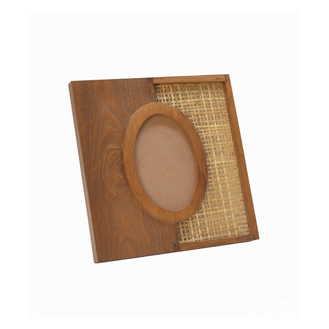 Handcrafted in teakwood with a blasted grain and woven rattan detail, Veil carries the quiet rhythm of the dunes. Its surface shifts between raw texture and smooth finish, echoing the way wind drapes sand in layers. More than a frame, it becomes a vessel for memory—subtle, timeless, and rooted in nature.